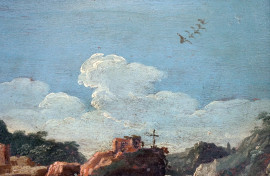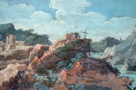 Paesaggio roccioso, olio su tavola, cm 18,5x23, XIX-XXsecolo, entro cornice.