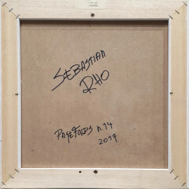 Page folds, 2017, composizione astratta a tecnica mista su tavola, cm 33,5x32,5, con autentica, entro cornice