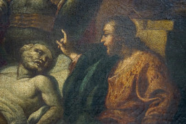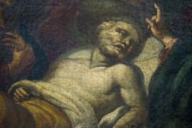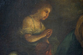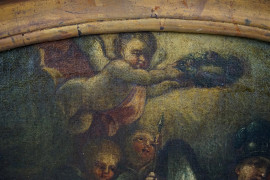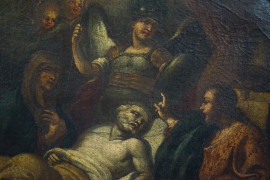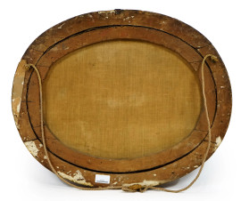 Pittore del XVII secolo, Morte di San Giuseppe, olio su tela ad assetto ovale, cm 58x74, entro cornice