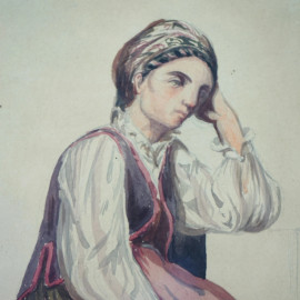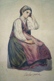 Popolana sulmonese, acquarello su carta, cm 29,5x21, seconda metà XIX secolo, entro cornice, (difetti sulla carta).