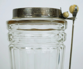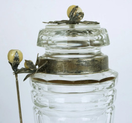 Portaciliegie sciroppate in cristallo ed argento, punzoni Miracoli, anni '30, cm h 24, (piccoli difetti).