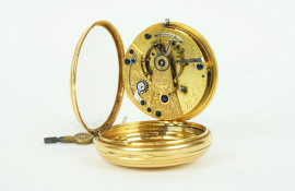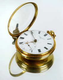 Richard Hamilton, orologio da tasca in oro 18 kt con quadrante smaltato (recante difetti, da revisionare), diam. cm 5,4
