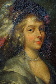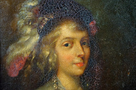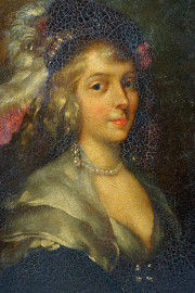 Ritratto di nobildonna, olio su tavola, cm 26,5x21, XIX secolo, entro cornice.