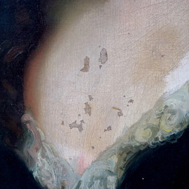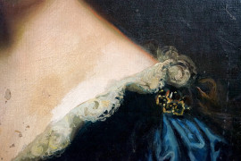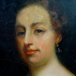 Ritratto di nobildonna, olio su tela, cm 97x75, XIX secolo, entro cornice, (cadute di colore).