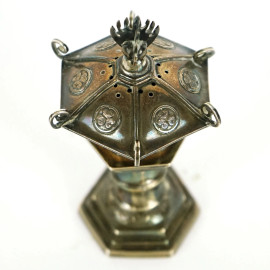 Salierina a forma di pagoda in argento, cm h 10, arte orientale, peso gr. 40.