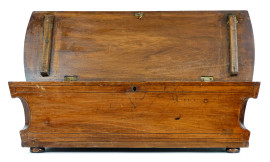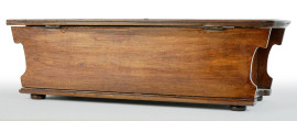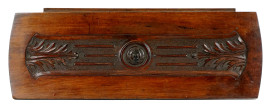 Scatola in legno, coperchio con particolari intagliati a motivi fogliacei, cm h 12x45x15, inizi XX secolo, (segni del tempo).