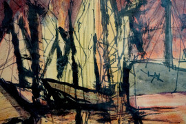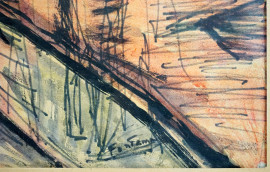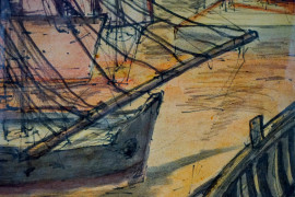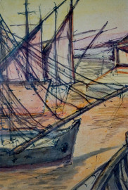 Scorci di porticciolo, coppia di dipinti ad acquarello su carta, cm 38x29, firmati, entro cornici.