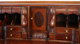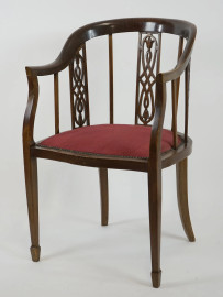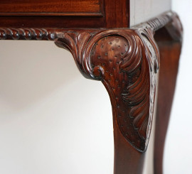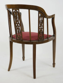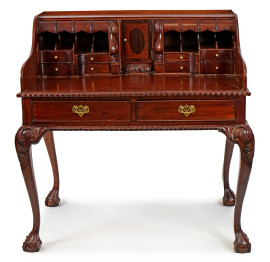 Scrittoio Chippendale, inizi XX secolo, in mogano con poltroncina a pozzetto, misure scrittoio cm h 107x104x64