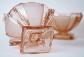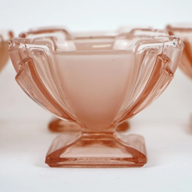 Sei coppette déco in vetro rosa, cm h 7, XX secolo.