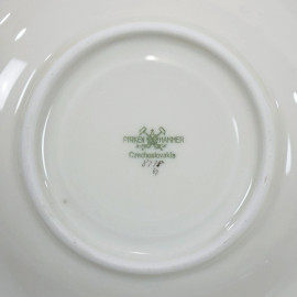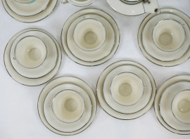 Servizio da thè in porcellana bianca con finiture turchesi e argentate, Cecoslovacchia, Manifattura Pirken Hammer, XX secolo.