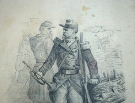 Soldati risorgimentali, matita su carta, cm 23,5x18, firmato, entro cornice