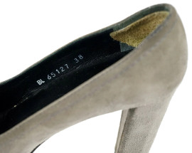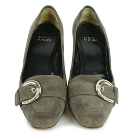Stuart Weitzman, paio di scarpe grigie con tacco e fibbia, numero 38, (segni di utilizzo).