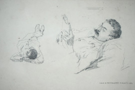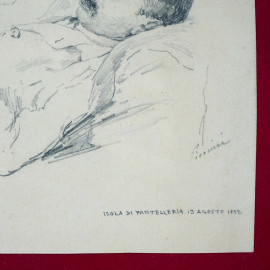 Studio di figure, matita su carta, cm 14,5,x21, firmato e datato, entro cornice.