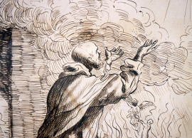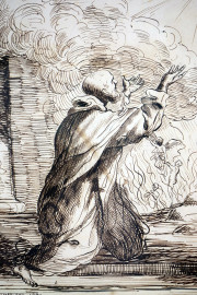 Studio per figura di Santo, inchiostro su carta, cm 22x17,5, firmato e datato in basso a sinistra, entro cornice