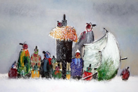 Figure, olio su tela, cm 50,5x70,5, entro cornice.