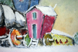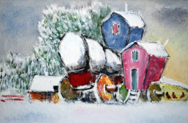 Paesaggio invernale, olio su tela, cm 30,5x40, entro cornice