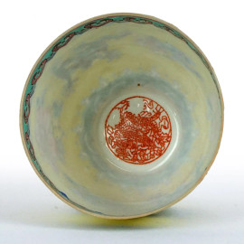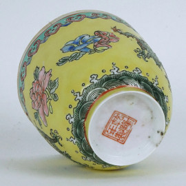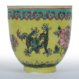 Tazzina a decoro di fiori e dragoni, cm h 8x8, Cina, XX secolo