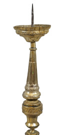 Torciere in lamina argentata, sbalzata e cesellata, inizi XVIII secolo, cm h 57,5, (difetti).