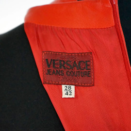 Versace Jeans Couture, completo vestito smanicato e blazer rosso con cintura intercambiabile, taglia IT 42.