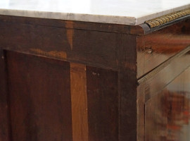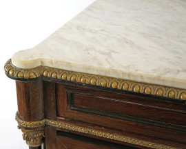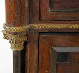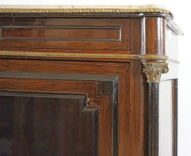 Vetrina in palissandro, XIX secolo, piano in marmo bianco, fronte ad un'anta ed un cassetto, montanti a colonna, piedi a cipolla, parti ebanizzate, finiture in bronzo dorato, cm 110x54x102, (difetti)