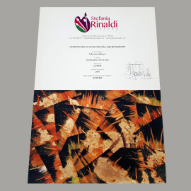 Vibrazioni riflesse n. 4, composizione astratta a tecnica mista e oro su carta, cm 33x48, firmato al retro, con autentica