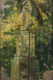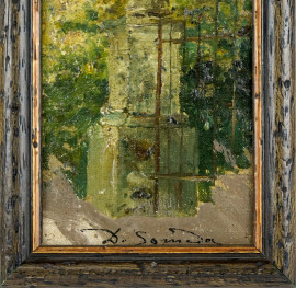 Villa Borghese, olio su cartone telato, cm 12,5x7,5, firmato D.Someda, entro cornice.