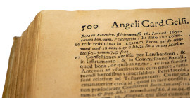 Volume "Decisiones Sacrae Rotae Romanae Coram R.P.D. Angelo Celso Romano […]", Ex Typographia Reverendae Camerae Apost., 1668, (difetti e macchie).