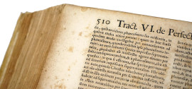 Volume "R.P. Ant. Perez, Pontireginensis Navarri, e Soc. Iesu, In secundam & tertiam partem D. Thomae Tractatus Sex […]", Sumptibus Laurentii Arnaud et Petri Borde, Lugduni, 1669, (difetti e macchie).