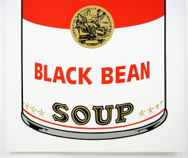 After Andy Warhol (1928-1987), Campbell's Black Bean Soup, Sunday B. Morning , 2000ca., serigrafia a colori su carta, cm 89x58,5, con timbro blu sul retro: "Fill in your signature" e "Published by Sunday B.Morning", (difetti sulla carta).