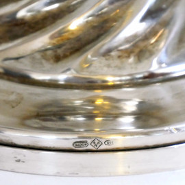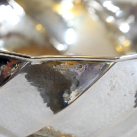 Alzata in argento 800 con timbri, battuta a mano, sigillo M, numerato 247, PD, cm14x20, peso gr. 408