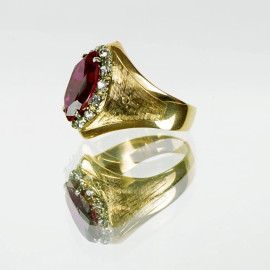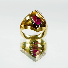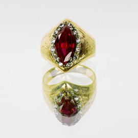 Anello in oro 18 KT con pietra rossa centrale, peso gr.6,5