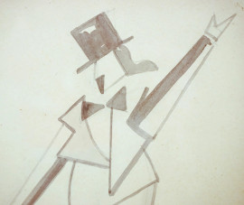 Anonimo artista futurista, uomo in frac, acquerello su carta, cm 25,5x19, entro cornice