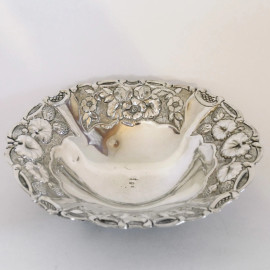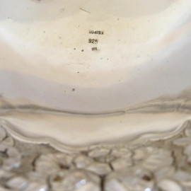 Antico vassoio in argento 925, manifattura greca, lavorato a mano, cm18x20,5x5,5, peso gr. 205