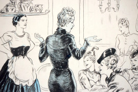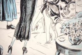 Ricevimento tra signore, tecnica mista su carta, cm 34x29