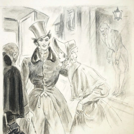 Scena nel foyer, carboncino su carta, cm 20,5x16,5.