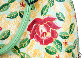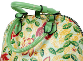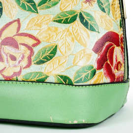 Borsa in similpelle verde acqua con decori floreali, cm 26x32x16,5, (difetti).