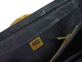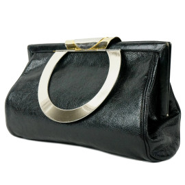 Borsetta a mano in pelle nera, cm 18x25,5x5,5, manico e chiusura in metallo argentato e dorato