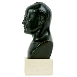 Busto di Mussolini, scultura in bronzo, cm h 11, base in marmo, XX secolo.