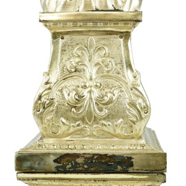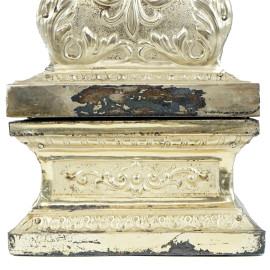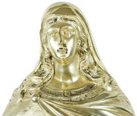 Busto raffigurante Santa, in legno rivestito in lamina di metallo sbalzato e cesellato, cm h 63, XX secolo, (difetti)