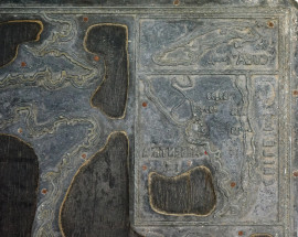Cartina geografica, antica matrice per incisioni in zinco e legno, cm 28x43,5.