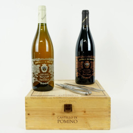 Castello di Pomino, Marchesi di Frescobaldi, vino bianco 2004 e vino rosso 2001, entro cassetta con accessori.