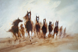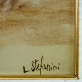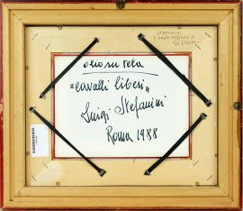 Cavalli, olio su cartone telato, cm 18,5x23, firmato Luigi Stefanini, entro cornice.
