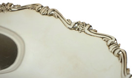 Centrotavola in argento, profilo cesellato, cm 5,5x28, gr. 305