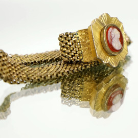 Choker in metallo dorato con coppia di cammei, lunghezza cm 17