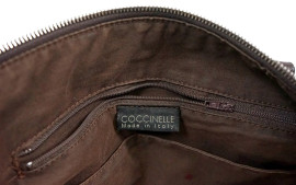 Coccinelle, borsa da viaggio in pelle marrone a due manici, cm 22x34,5x14, (segni di utilizzo).