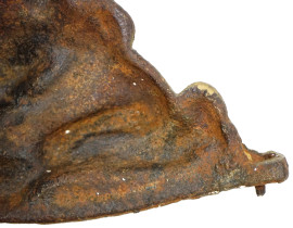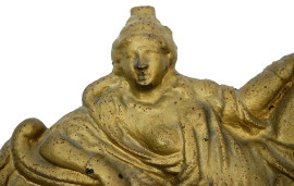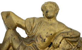 Coppia di fregi in ghisa raffiguranti l'Allegoria dell'Abbondanza e Fanciullo con specchio, cm 20x40, XX secolo, (difetti)