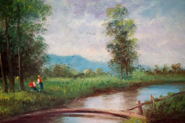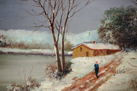 Coppia di paesaggi, olio su tavola, cm 20x30, siglati, entro cornice