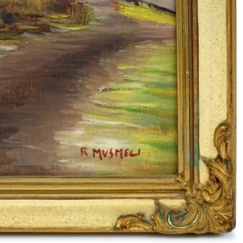 Coppia di paesaggi, olio su tavola, cm 24x18, firmati R.Musmeci, entro cornici.