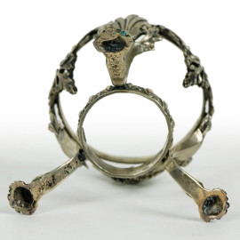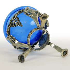 Coppia di saliere in argento, vaschette in vetro blu cobalto, cm h 6, peso gr.83