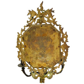Coppia di specchiere di linea ottagonale ad applique a tre luci in bronzo, cm h 45, XIX secolo.